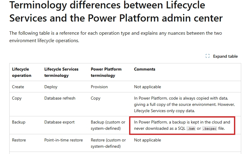One of the limitations with the new PPAC experience is the inability to download a database backup directly(see Terminology differences between Lifecycle Services and the Power Platform admin center).