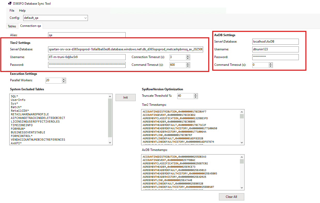 Configure the tool: Enter the connection details for both the source (Tier2) and destination (Local AxDB).