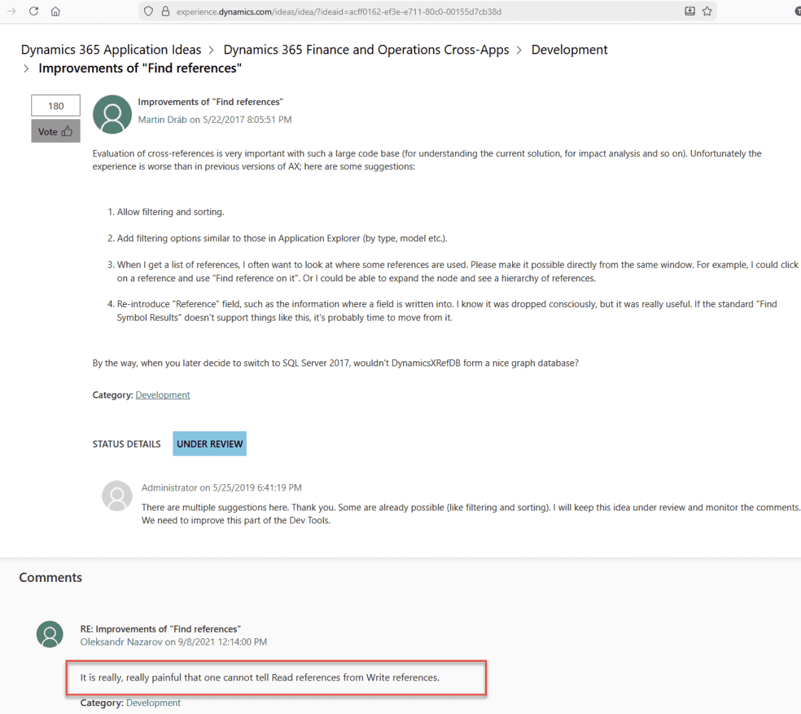 From the first release of Visual Studio for X++ development, one of the top ideas was to improve cross-references - specifically, to add a Read/Write modifier in the Cross-Reference form: