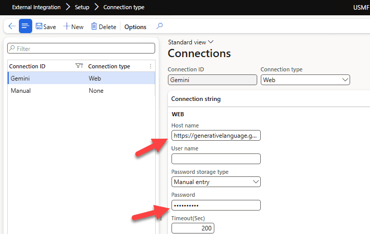To store an API key, we need to create a connection type. The Google Gemini endpoint is: https://generativelanguage.googleapis.com/v1beta/models/.