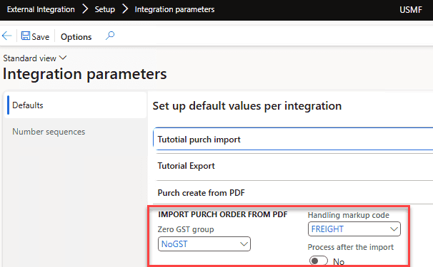 We also need some custom parameters. When importing documents, you’ll likely define rules for tax calculation. There are usually two options: either take the value from the document (and then use the line Tax adjustment) or calculate it directly in D365FO. The latter requires defining a Zero tax group.