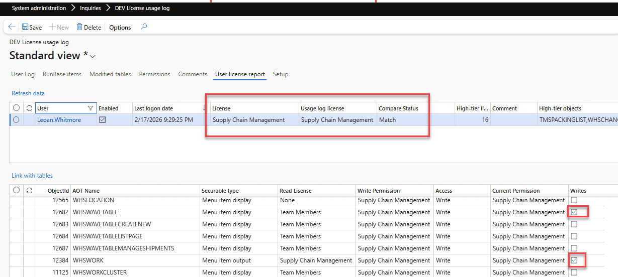 In this example, we can see that the user accesses the Work and Waves forms and actually writes to the relevant tables. This legitimately requires a Supply Chain Management license; it cannot be further optimized.
