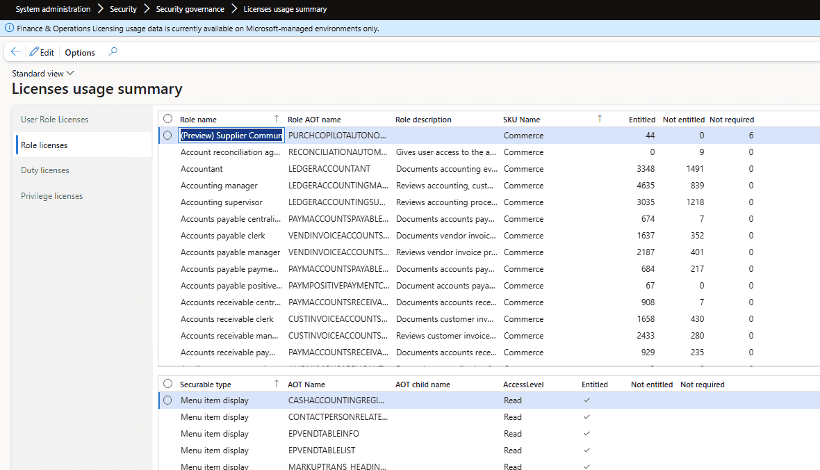In this blog post, I will describe how the current licensing works in D365FO and introduce an open-source X++ utility that allows you to track the actual usage of elements and compare it with the elements assigned to users via user roles.